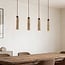 Die 4-flammige Hängelampe Oreno kombiniert schlanke Zylinder aus Travertin mit warmen Holzdetails in einem ruhigen und natürlichen Design. Im Travertin sind subtile Farbnuancen und Strukturen sichtbar, wodurch jeder Lampenschirm seinen eigenen Charakter erhält. Die vier Lichtpunkte hängen in einer geraden Linie an einer länglichen Deckenplatte und sorgen für einen gezielten Lichteffekt nach unten. Dadurch kommt Oreno über einem Esstisch, einer Kochinsel oder einem langen Beistelltisch besonders gut zur Geltung. Die Leuchte ist mit vier GU10-Fassungen ausgestattet und wird mit 4,6W Philips Leuchtmitteln mit warmweißem Licht (2700 K) geliefert.