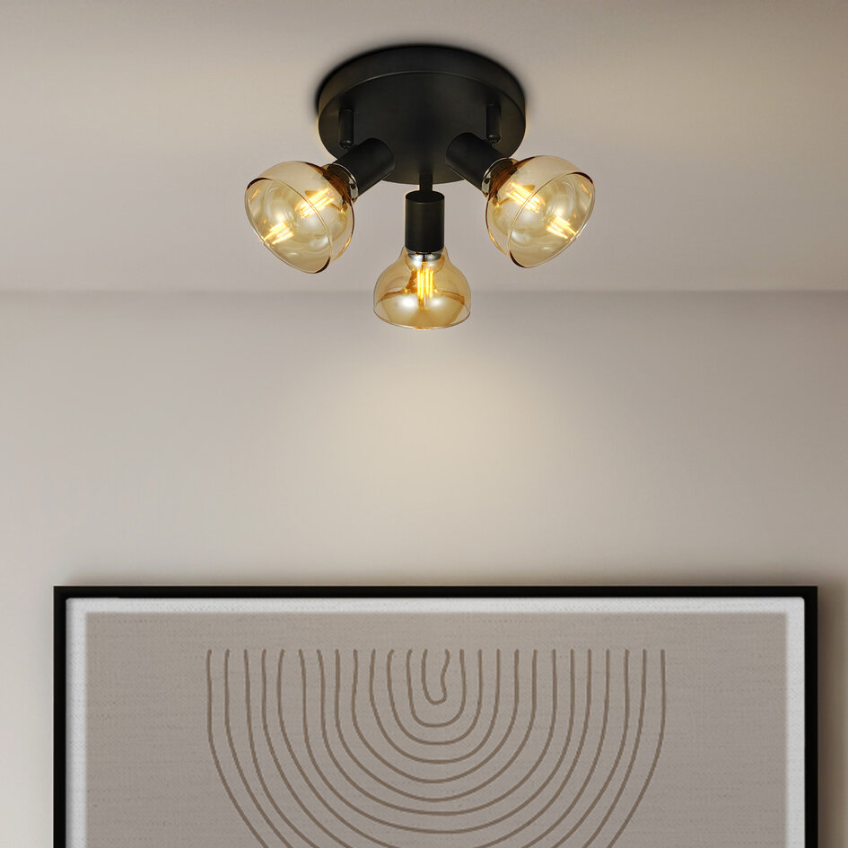 Sie suchen eine funktionelle Beleuchtung mit Stil? Dann ist der Deckenspot Missouri das Richtige für Sie. Die drei Strahler können in die gewünschte Position gebracht werden, um den Raum richtig auszuleuchten. Neben dem funktionalen Licht verleiht das bauchige, amber Glas der Leuchte einen zusätzlichen Hauch von Stil. Geeignet für jeden Raum.