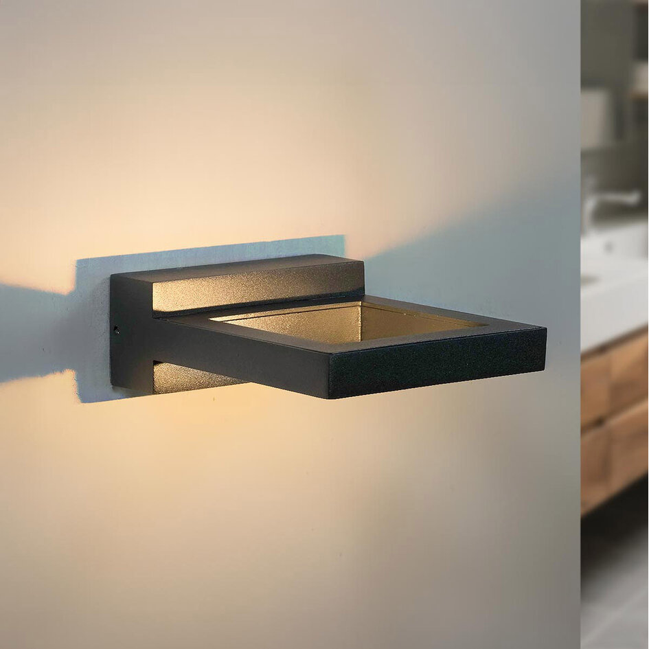 Diese moderne Wandleuchte zeichnet sich durch ihr einzigartiges, klares Design und ihren minimalistischen Look aus. Das indirekte Licht strahlt sanft an der Wand auf und ab und schafft eine warme, angenehme Atmosphäre im Badezimmer. Das robuste schwarze Gehäuse und die spritzwassergeschützte Ausführung (IP54) machen diese Leuchte ideal für den Einsatz in Feuchträumen. Sehr gut geeignet als stilvolle Akzentbeleuchtung neben dem Spiegel oder an einer freien Wand.