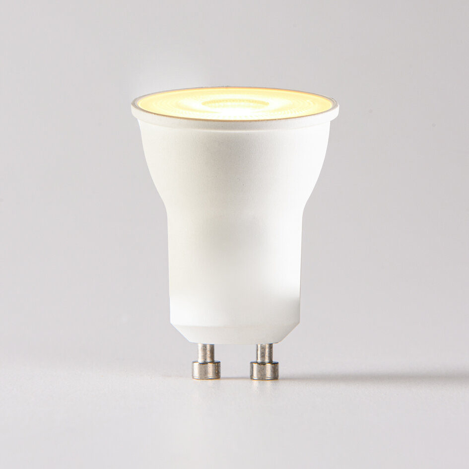 Der PAR11 GU10 LED-Spot mit einer Leistung von 3,2 Watt ist ein energiesparender Ersatz für einen herkömmlichen Halogenspot mit etwa 35 Watt. Dieser kompakte Spot mit GU10-Fassung erzeugt 300 Lumen und eine warme Lichtfarbe von 2700 K, was für eine angenehme und stimmungsvolle Beleuchtung in Ihrem Zuhause sorgt. Dank der Dimmfunktion können Sie die Lichtstärke ganz einfach anpassen.