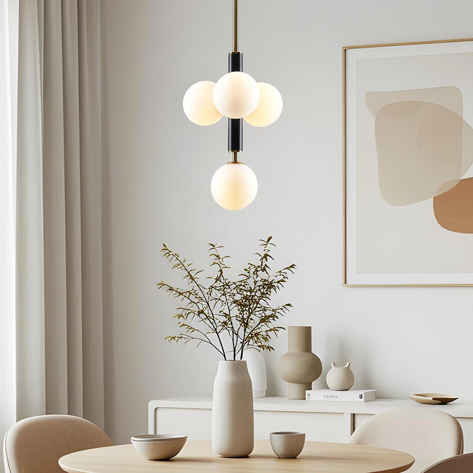 Sind Sie auf der Suche nach einer einzigartigen Hängeleuchte für einen kleinen bis mittelgroßen Esstisch? Dann ist Lennard eine gute Wahl. Diese Hängeleuchte hat vier Milchglas-Kugeln, die spielerisch um einen schlanken schwarzen Stab hängen. Als solche passt Lennard gut in ein modernes Interieur. Das schöne Zusammenspiel von Licht und Form zieht sofort die Aufmerksamkeit auf sich. Dank des Milchglases wird das Licht sanft in den Raum gestreut. Diese stimmungsvolle Lampe ist daher eine echte Bereicherung für Ihr Ess- oder Wohnzimmer.