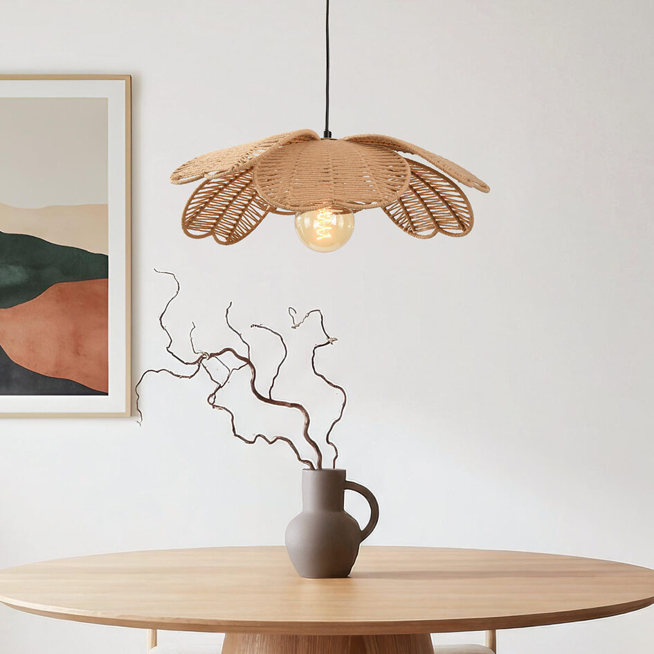 Die Hängelampe Solune hat eine verspielte, blumenähnliche Form und ist aus Baumwollseil gefertigt, was ihr ein leichtes und weiches Aussehen verleiht. Die offene Struktur des Schirms lässt das Licht subtil durch das Material scheinen und verleiht der Lampe ein dekoratives Lichtbild. Solune ist mit einer E27-Fassung ausgestattet (Leuchtmittel nicht im Lieferumfang enthalten), sodass Sie das Leuchtmittel und die Lichtstimmung selbst wählen können, beispielsweise mit einem Glühfadenleuchtmittel. Mit einem Durchmesser von ca. 47 cm kommt diese Hängelampe über einem Esstisch oder im Wohnzimmer gut zur Geltung und eignet sich dank ihrer weichen Form und dem leichten Material auch für ein Kinderzimmer.