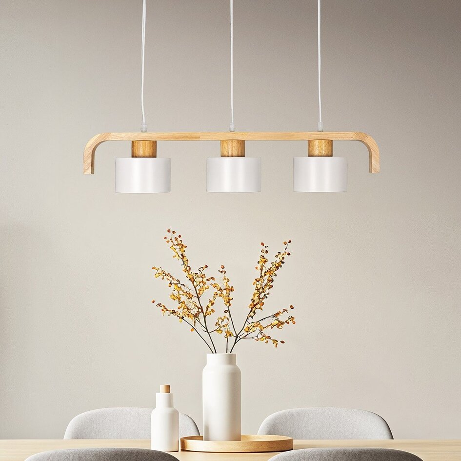 Rosie ist ein nostalgisches Prunkstück, das jedem Raum einen Vintage-Charme verleiht. Mit ihren drei Fassungen bietet Rosie genügend Licht, um den Raum zu erhellen. Sie können zwischen weißen oder grünen Lampenschirmen wählen. Mit den farbigen Schirmen in Kombination mit dem Holz passt Rosie gut in helle Innenräume. Ob über einem Esstisch, in der Küche oder im Flur, diese Retro-Pendelleuchte schafft ein warmes und gemütliches Ambiente. Kombinieren Sie Rosie mit der Stehleuchte Elsie und vervollständigen Sie das Bild.