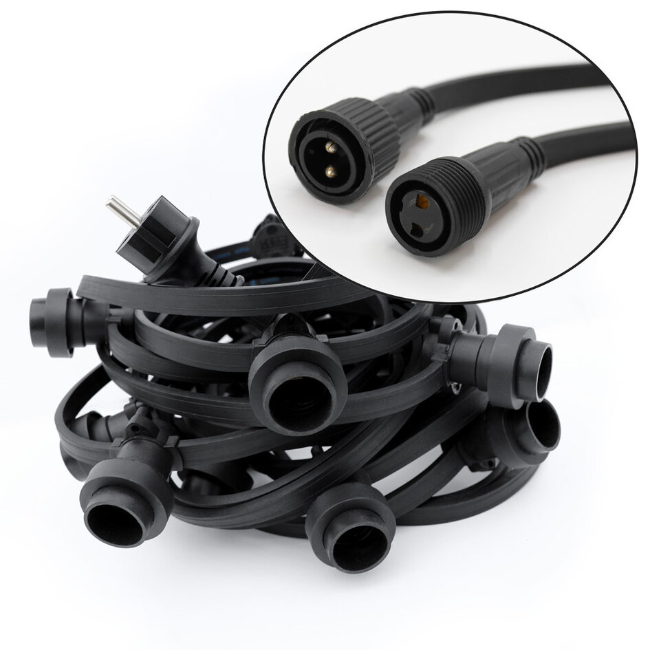 Auf unserer Website finden Sie auch 'Standard' Illu-Lichterketten mit Endkappe und ohne Steckverbinder. Diese sind nicht mit der erweiterbaren Variante kompatibel.