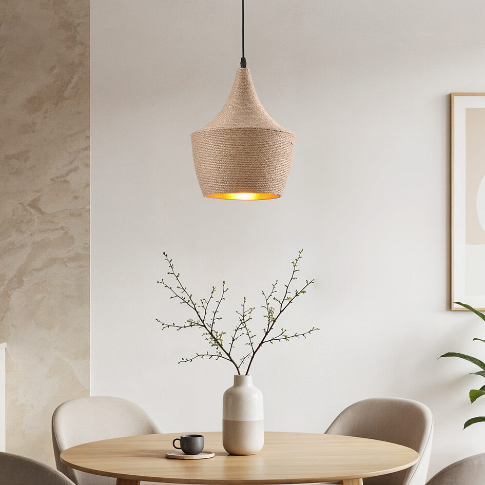 Die Pendelleuchte Laos ist eine angenehme Erscheinung, die sich durch ihren entspannten Look auszeichnet. Seine beruhigende Ausstrahlung verdankt er vor allem seiner Ausführung in natürlichen Materialien. Das starke Seil, das um den Schirm gewickelt ist, verleiht der Lampe ein reines Aussehen. Die goldene Oberfläche auf der Innenseite erzeugt einen feinen und gemütlichen Lichteffekt. Die Hängelampe verbreitet ein warmes, diffuses Licht von der Unterseite des Schirms. Laos zeichnet sich auch durch seine ausgewogene Form aus. Durch die Kombination von natürlichen Elementen passt Laos perfekt in ein ländliches Interieur, kommt aber auch als Blickfang in einem modernen Wohnraum zur Geltung. Die Hängelampe ist eine stimmungsvolle Beleuchtung für über dem Esstisch, im Schlafzimmer oder in der Diele. Wo auch immer die Leuchte hängt, sie wird Ihren Raum in ein warmes Licht hüllen. Laos ist eine Lampe, in der Sie sich völlig entspannen können. Die Hängelampe wird ohne Leuchtmittel geliefert, bestellen Sie dieses also trotzdem.