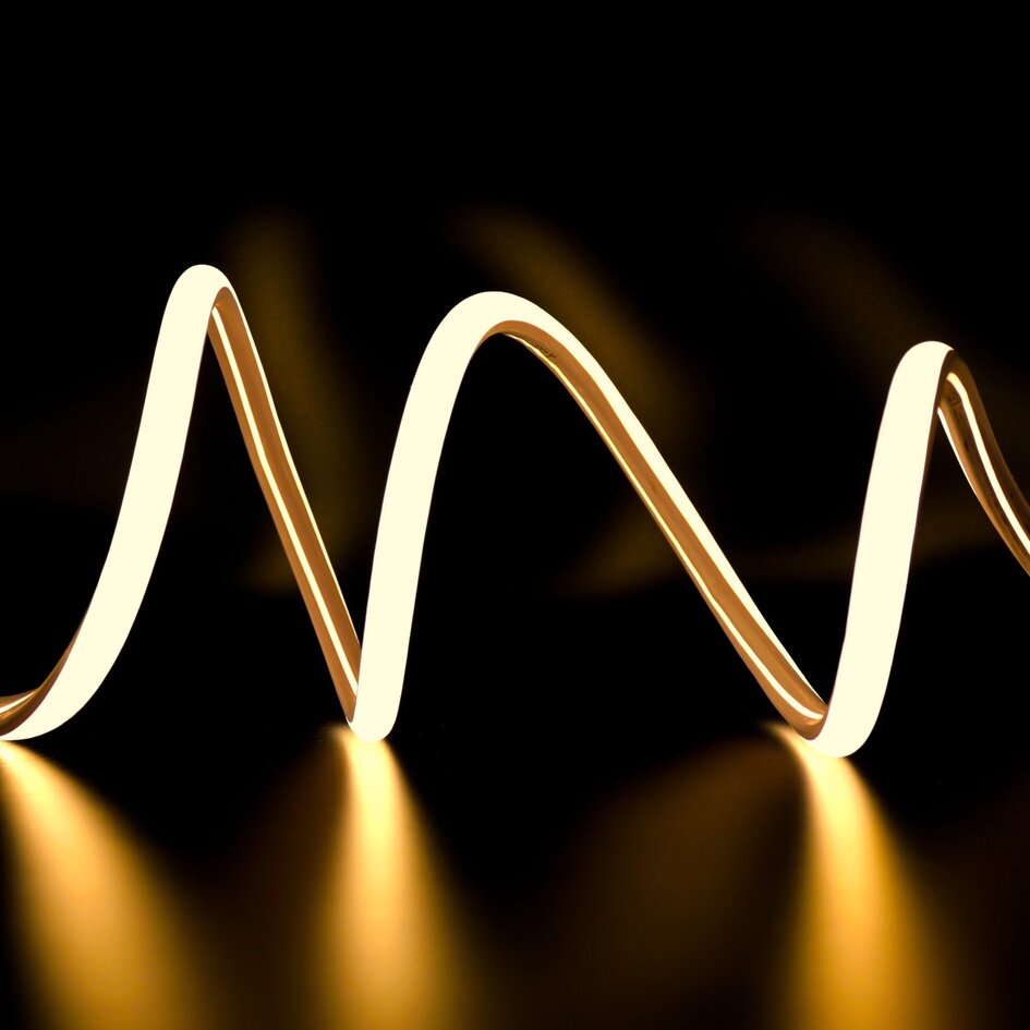 Diese energieeffizienten, warmweißen Hochspannungs LED-Neonröhren (230 V) bilden aufgrund ihrer vollen, warmweißen Lichtfarbe einen wunderbaren Lichteffekt. Aufgrund des lichtundurchlässigen Gehäuses sind die einzelnen LEDs (120 pro Meter) nicht sichtbar, was dafür sorgt, dass die flexible Neonröhre ein gleichmäßiges Licht schafft. Die flexible LED-Neonröhre lässt sich leicht in jede gewünschte Form biegen, eignet sich gut für den Einsatz bei wechselnden Wetterbedingungen, und kann aufgrund der IP-Klassifizierung von 54 problemlos im Freien angewandt werden.