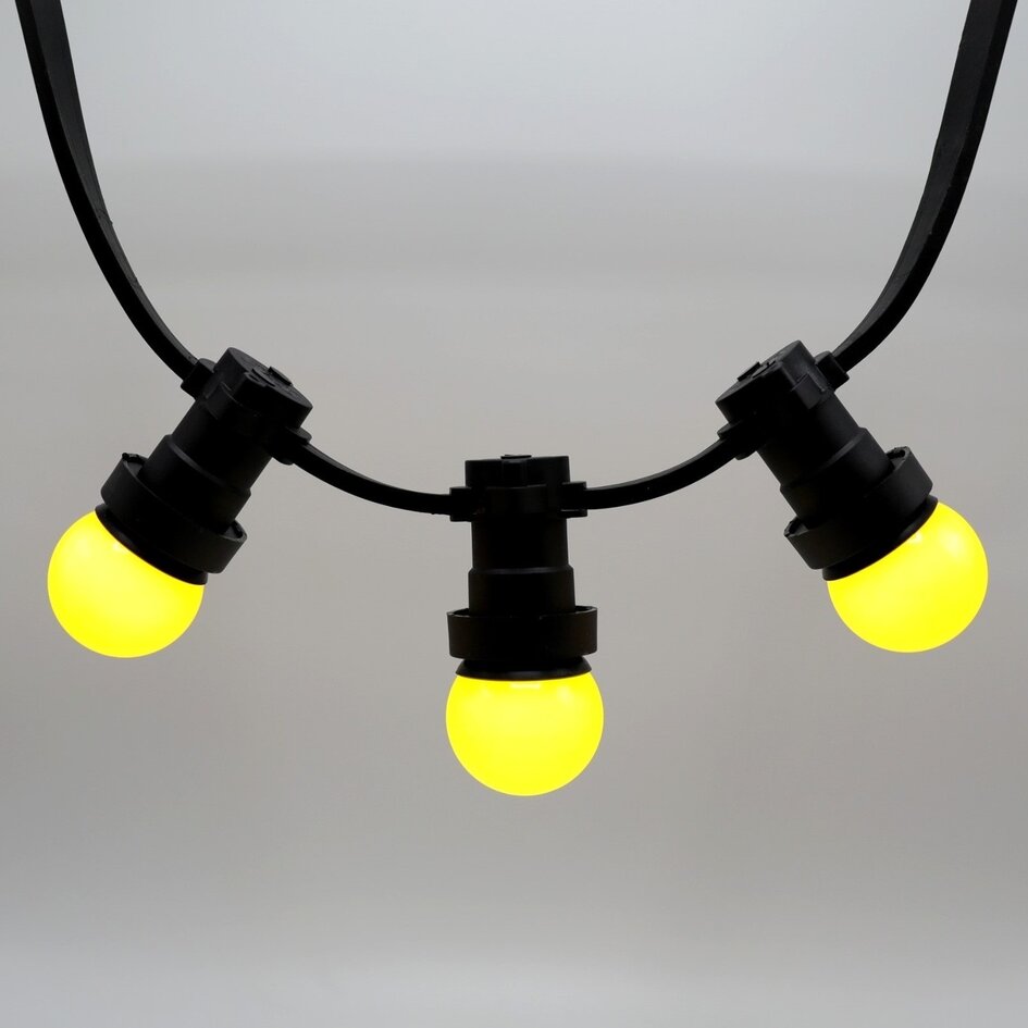 Möchten Sie Ihrem Garten, Ihrer Party oder Ihrem Restaurant eine gewisse Atmosphäre verleihen? Unsere gelben 1 Watt LED-Glühbirnen sorgen für eine wunderbare Lichtwirkung und sind mit gelb leuchtenden 15 bis 25 Watt Glühbirnen vergleichbar. Die gelbe Abdeckung der Glühbirne sorgt in Kombination mit den gelb leuchtenden LEDs für eine besonders strahlende Farbe.