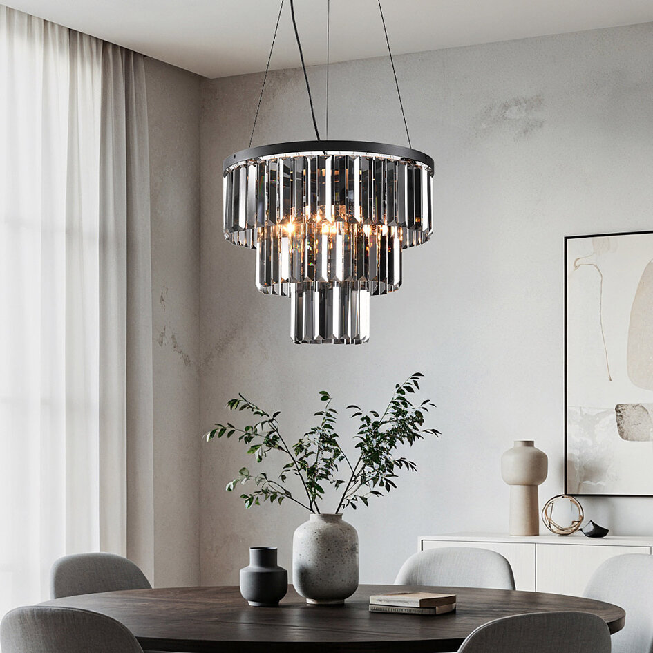 Haben Sie eine klassische Einrichtung und suchen Sie noch einen echten Blickfang für Ihr Wohnzimmer, Ihren Flur oder Ihr Schlafzimmer? Dann ist Kristal die Hängeleuchte, die Sie suchen. Die Lampe hängt an drei Stahldrähten, wodurch sie zu schweben scheint. Die vielen Rauchglaskristalle sorgen für einen schönen Lichteffekt, egal ob die Lampe ein- oder ausgeschaltet ist. Kristall ist eine echte Bereicherung für Ihren Wohnbereich.