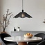 Dank der kompakten Größe des Schirms, Ø40 cm, ist diese Pendelleuchte für eine Vielzahl von Räumen geeignet. Die Hängeleuchte hat eine Aufhängehöhe von 120 cm mit einer Deckenplatte von Ø10 cm. Der durchbrochene Schirm ist aus schwarzem Metall und schwarzem natürlichem gewebtem Papier gefertigt.