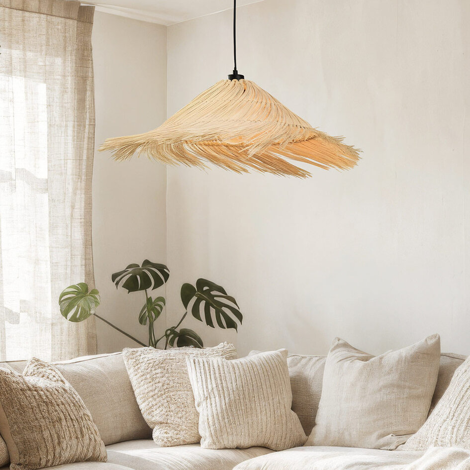 Die Hängelampe Kalina hat eine verspielte, organische Form und ist aus geflochtenem Rattan gefertigt, was ihr ein natürliches und luftiges Aussehen verleiht. Der geflochtene Schirm verleiht der Lampe eine weiche Silhouette und lässt das Licht subtil durch das Material spielen. Kalina ist mit einer E27-Fassung ausgestattet (Leuchtmittel nicht im Lieferumfang enthalten), sodass Sie das Leuchtmittel und die Lichtstimmung selbst wählen können, beispielsweise mit einer Glühfadenlampe. Mit einem Durchmesser von ca. 70 cm kommt diese Hängelampe über einem Esstisch, im Wohnzimmer oder als stimmungsvolles Element in einem geräumigen Interieur besonders gut zur Geltung.