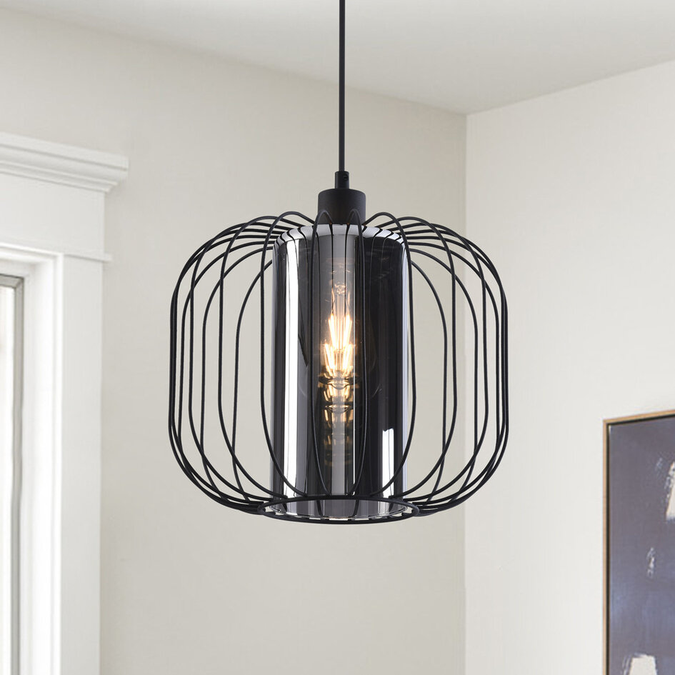 Dila ist eine einzigartige Pendelleuchte, die schon beim Betreten der Wohnung ins Auge sticht. Der offene Schirm, der von schwarzen Stäben und einem Gehäuse aus Rauchglas umhüllt ist, hat einen coolen Look. Die Lichtquelle befindet sich im Inneren des Glasgehäuses, das weiches Licht spendet, während das Licht durch die Metallstäbe tanzende Schatten an der Decke oder der Wand erzeugt. Ganz gleich, ob Sie Dila über einem Beistelltisch oder im Schlafzimmer auf beiden Seiten Ihres Bettes aufhängen, die Lampe strahlt stimmungsvolles und stilvolles Licht aus.
