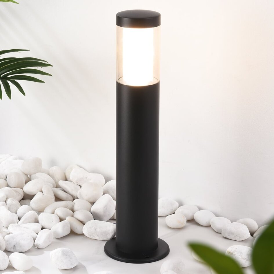 Schaffen Sie eine sichere Umgebung mit der Sockelleuchte Leandre. Stellen Sie Leandre entlang eines Gartenwegs, einer Terrasse oder einer Einfahrt auf, nicht nur für zusätzliche Sicherheit, sondern auch als stimmungsvolles Licht. Sie können aber auch Ihre Pflanzen und Sträucher beleuchten, indem Sie die Leuchte zwischen ihnen platzieren. Der schwarze Sockel hat einen modernen Look und der milchig-weiße Schirm spendet weiches und angenehmes Licht in warmweißer Farbe (3000K). Dank der Auswahl zwischen zwei verschiedenen Höhen können Sie Ihren Garten mit einer Stehlampe Ihrer Wahl verschönern.