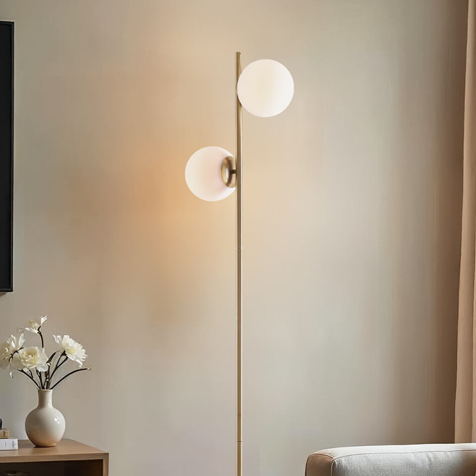 Sie haben Ihr Wohnzimmer stilvoll eingerichtet und möchten es mit einer schicken Lampe ergänzen? Dann wählen Sie Phae. Diese goldene Stehlampe hat zwei Glasschirme, durch die das Licht wunderschön leuchtet. Das Gold in Kombination mit Weiß sorgt für ein luxuriöses Aussehen, wodurch diese Lampe zu verschiedenen Einrichtungsstilen passt. Kombinieren Sie Phae mit einer romantischen Einrichtung oder stellen Sie sie in ein modernes Haus. Dank ihrer Höhe von 155 cm ist Phae die ideale Beleuchtung für den Platz neben dem Sofa. Der Sockel der Leuchte hat einen Durchmesser von 300 mm und das Kabel ist 2,1 m lang.